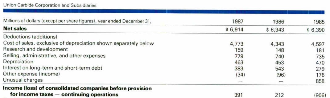 UCC was going through a restructuring in the late 1980s driven in part by lawsuits and environmental liabilities (related to multiple chemical leaks and the Bhopal Disaster).