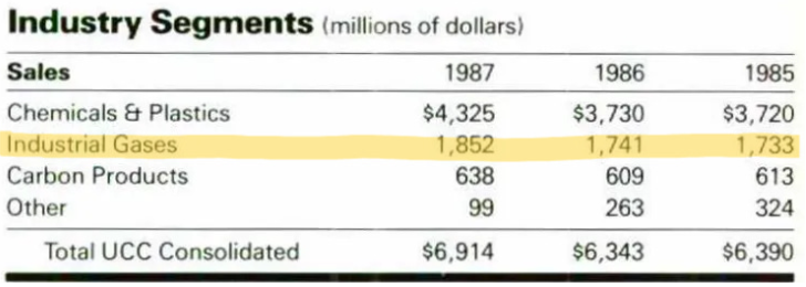 Ethylene Oxide was buried within their “Industrial Gases” segment, most of which was focused on industrial manufacturing, not sterilization.
