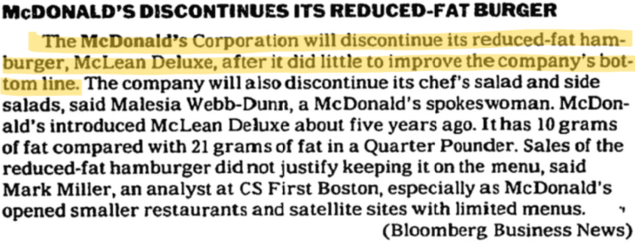 Unfortunately, the McLean saga ended in 1996 when McDonald’s discontinued it.