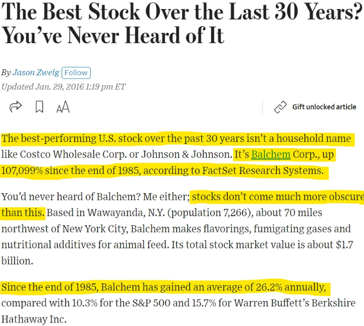 Despite the huge return, the Balchem case remains largely unknown outside of a small circle of investors.