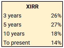 Here's the forward IRR (including dividends) for various timeframes after Charlie's purchase: