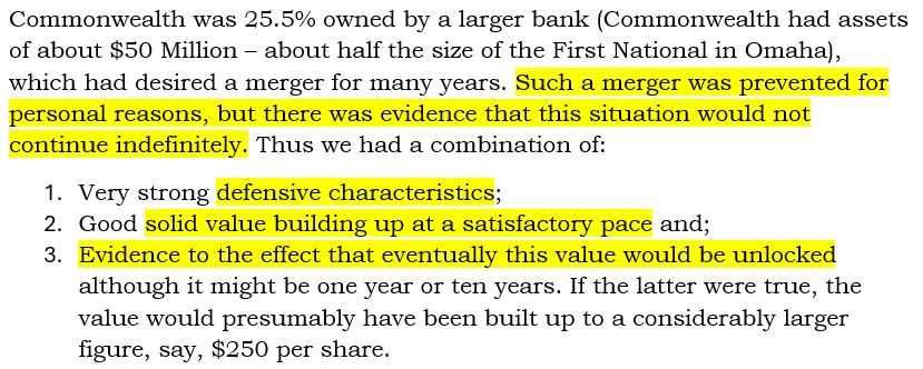 Plus, Warren thought Commonwealth would eventually sell to another bank. He didn't know if this would happen in one year or ten years.