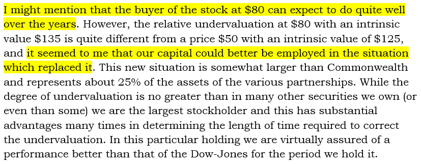 Buffett started buying Commonwealth at $50 and thought it was worth $125. Here's a table with valuation ratios: