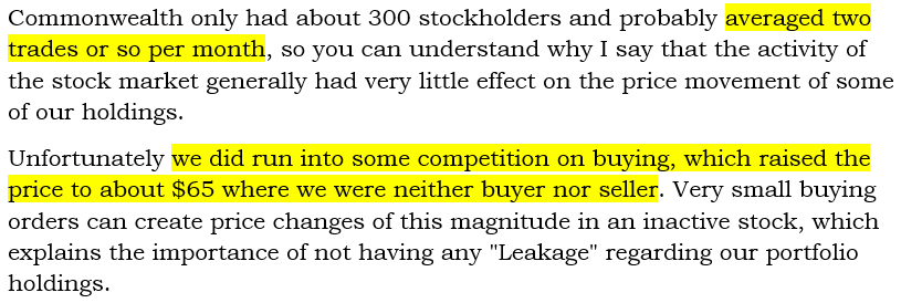 It was small, cheap, and thinly traded. Buffett made it a 10-20% position for the various partnerships he was managing.