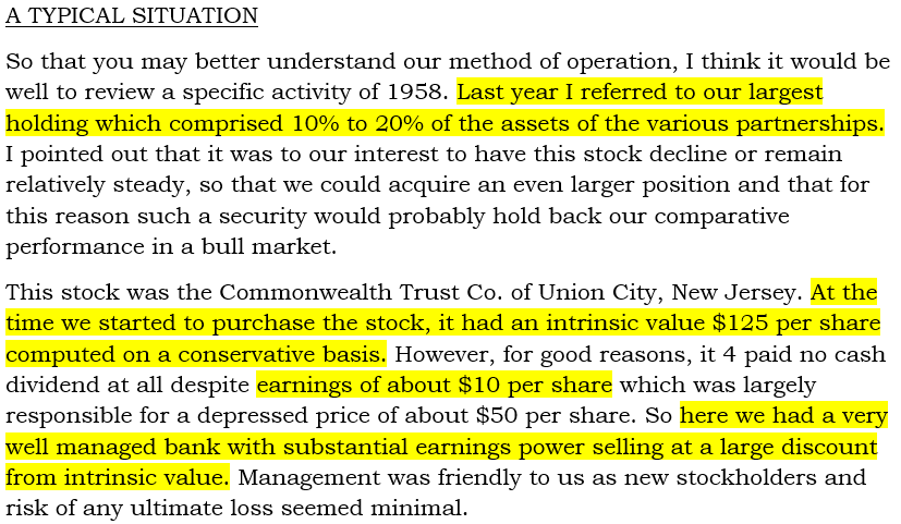 Here's an example of a bank we have been buying over the last year. I would argue it's even better than Buffett's Commonwealth Trust.