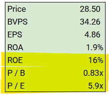 We started buying this bank in June of 2025 at $28.50 per share. Here are the figures: