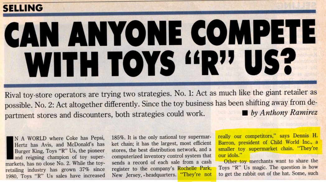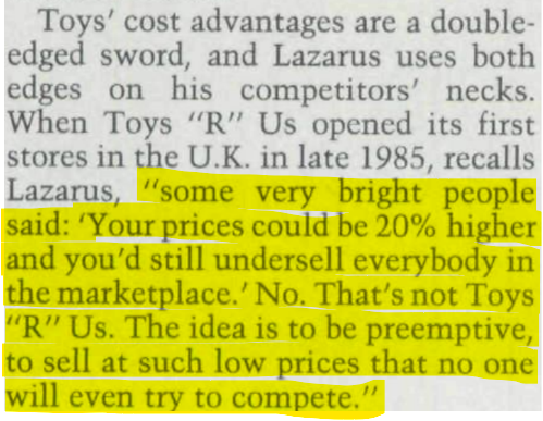 This mirrors many other retail success stories, both before and after Toys R Us.