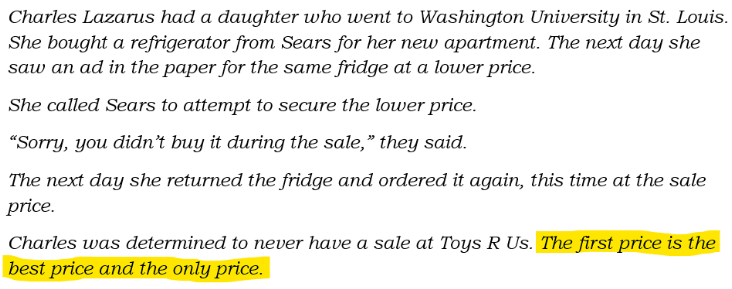 A couple stories from Larry on Charles Lazarus and his approach to business: