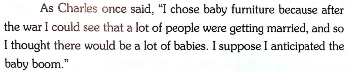 After the war, Charles came back to Washington and converted his dad's old bike shop into a children's furniture store. The idea was spurred by his insight into the upcoming baby boom.