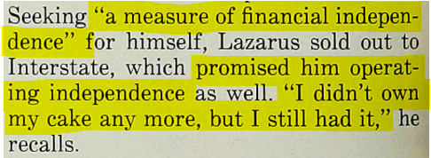 Lazarus was one of the most accomplished retailers of the 1970-1990 period, yet his name is virtually unknown to both entrepreneurs and investors today. His track record rivals those of Sol Price, Sam Walton, and pretty much any other revered retail entrepreneur you can think of.