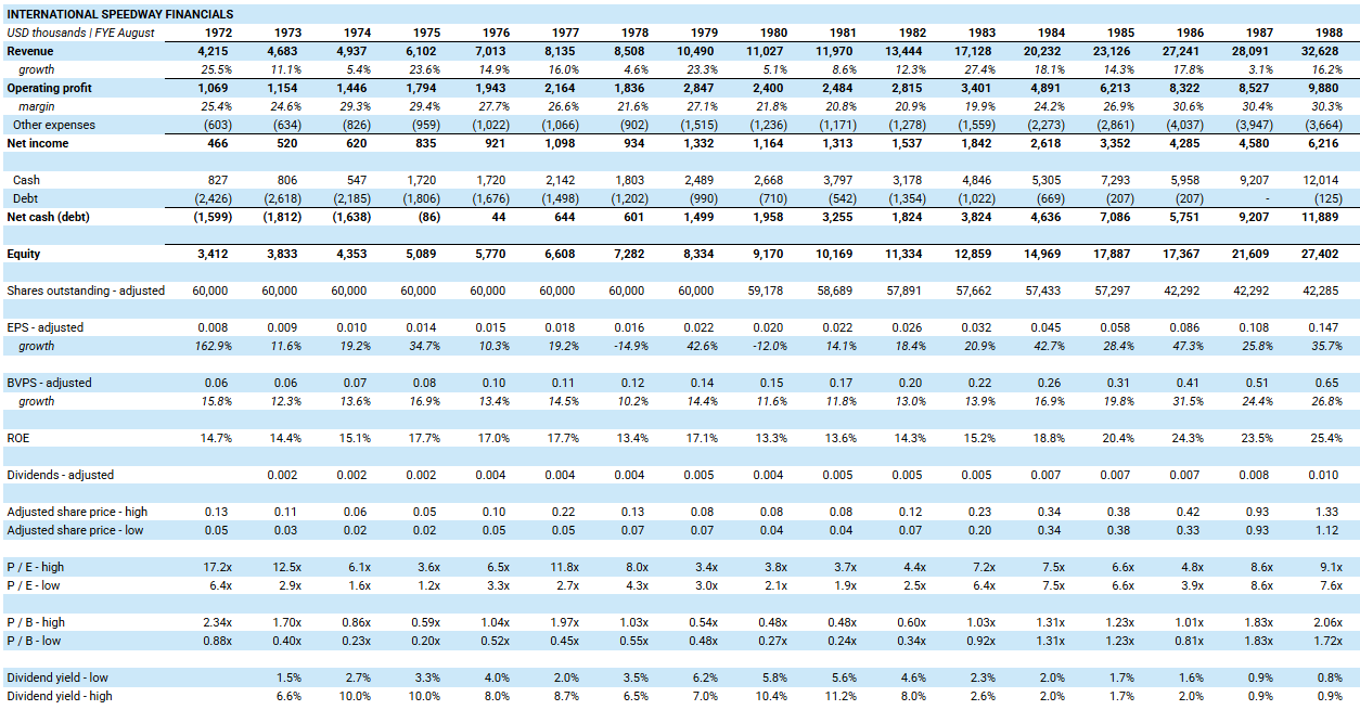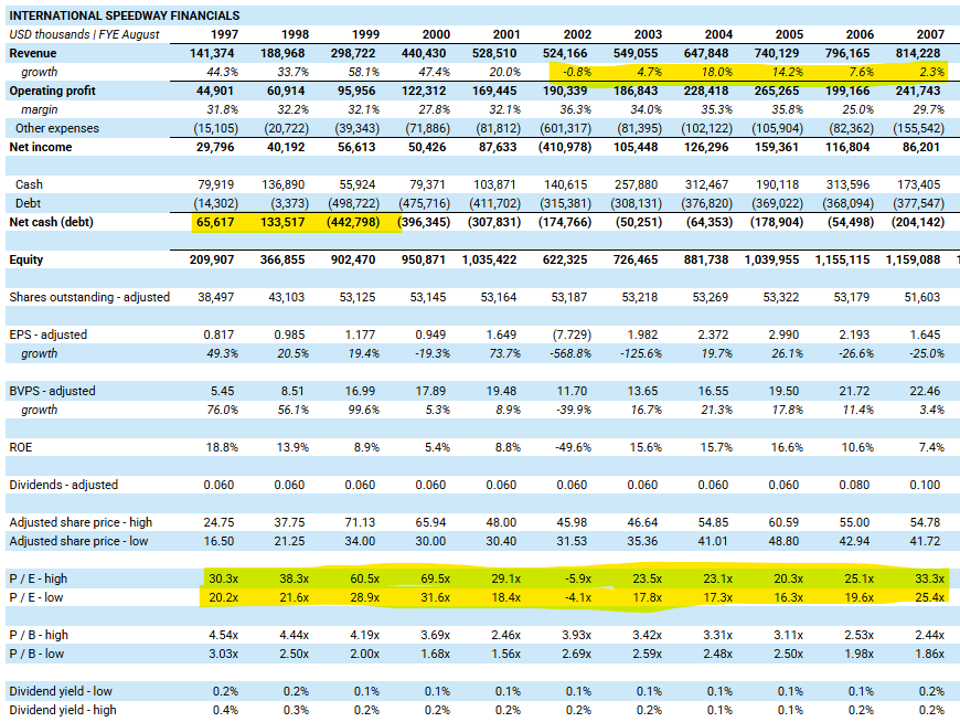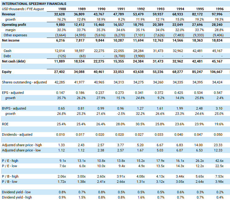 It's interesting to zoom out and observe the full lifecycle of International Speedway and its investment prospects.