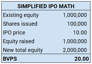 As an IPO investor, you were able to purchase the shares at $10. You paid only 50% of tangible book value.