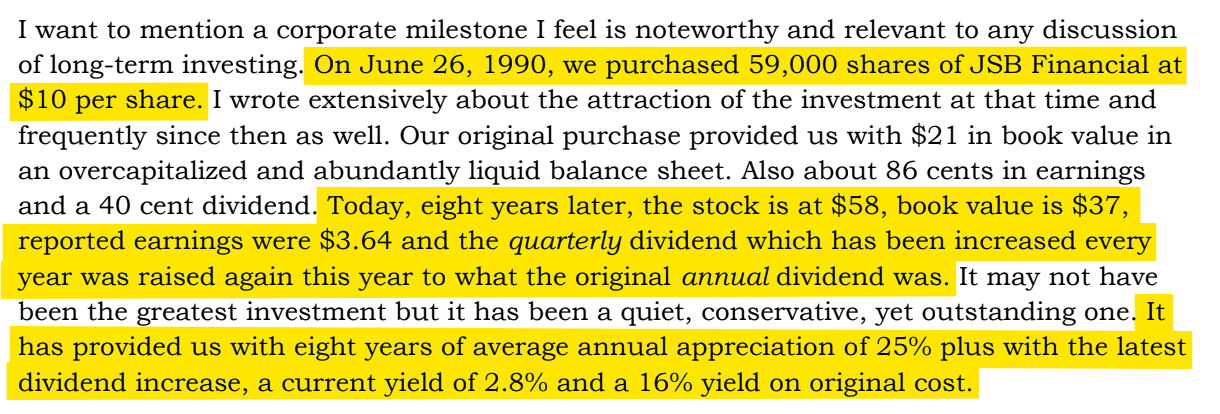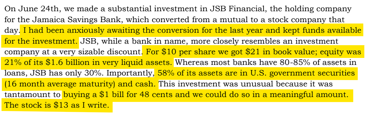 That little bank in Queens was called Jamaica Savings Bank. And JSB ended up being a killer investment.